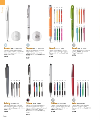 modrou náplňou. Rozmer: ø12×140 mm matnou metalickou úpravou. Tri farebné náplňou. Rozmer: ø10×133 mm Rozmer: ø10×135 mm Potlač: P0(4),