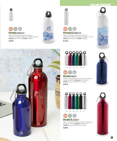 sublimačnú potlač s hliníkovou karabínou, 400 ml. sublimačnú potlač s hliníkovou karabínou, 750 ml.