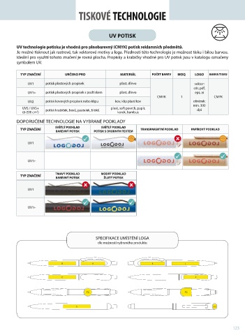 Ideální pro využití tohoto značení je rovná plocha. Propisky a krabičky vhodné pro UV potisk jsou v katalogu označeny