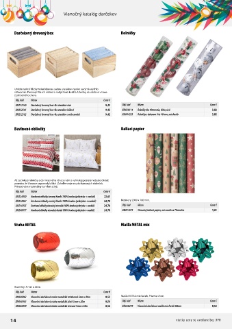 XM240977 Bavlnené obliečky vianočný darček 100% bavlna (prikrývka + vankúš) 24,70 XM811875 Vianočný baliaci papier, mix motívov 70cmx2m 1,81