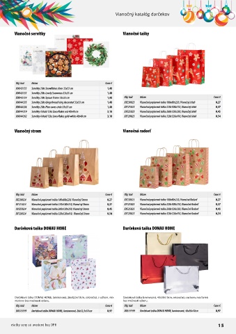 XM044359 Servítky Airlaid 12ks Snowflakes red 40x40 cm 3,10 XX525023 Vianočná papierová taška 260x120x350, Vianočný Jeleň 0,45