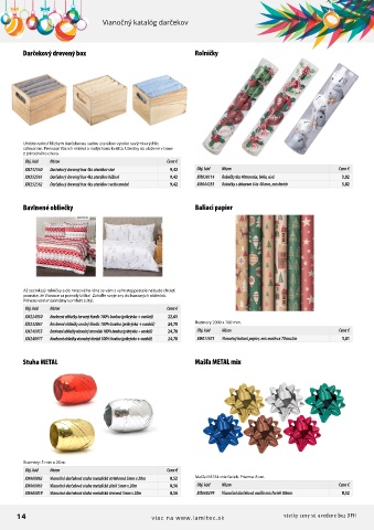 XM240977 Bavlnené obliečky vianočný darček 100% bavlna (prikrývka + vankúš) 24,70 XM811875 Vianočný baliaci papier, mix motívov 70cmx2m 1,81