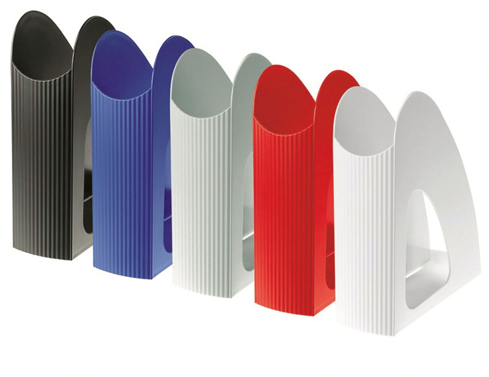 Viacúčelové plastové stojany v modernom dizajne. Vhodné na ukladanie časopisov, záznamov, katalógov a pod.