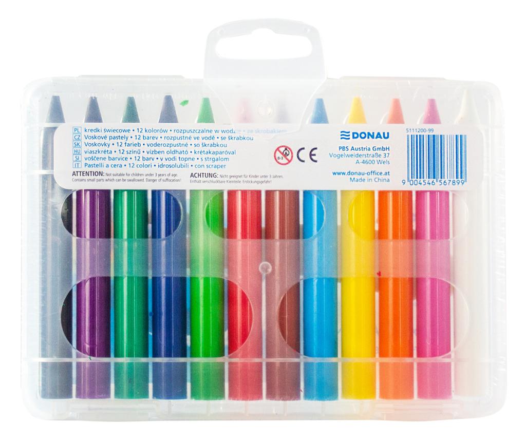 Voskové pastelky DONAU v puzdre, vodeodolné, 12 ks, mix farieb