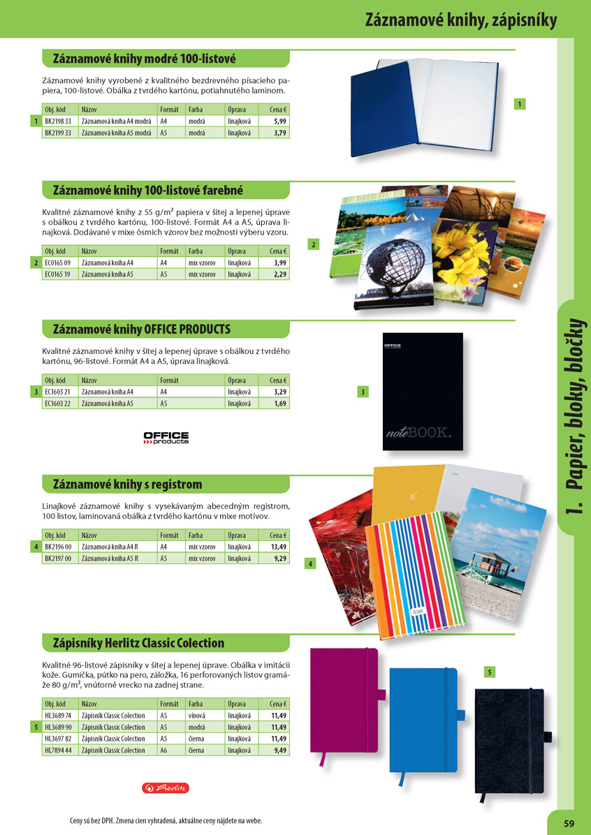 Záznamové knihy vyrobené z kvalitného bezdrevného písacieho papiera. Obálka z tvrdého modrého kartónu, potiahnutého laminom.